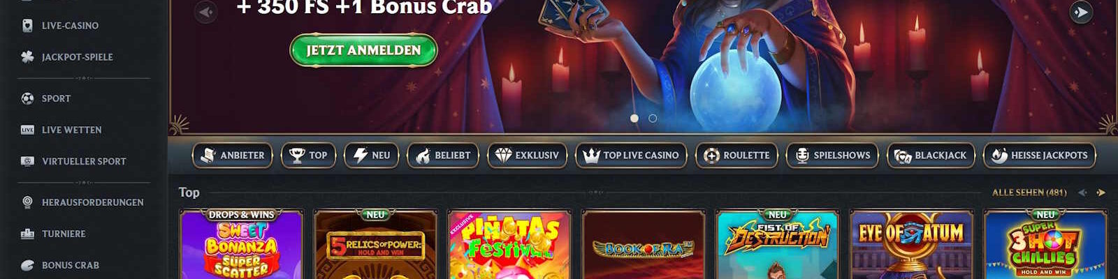 250 % Bonus bis 3000 € + 350 FS + Bonus Crab