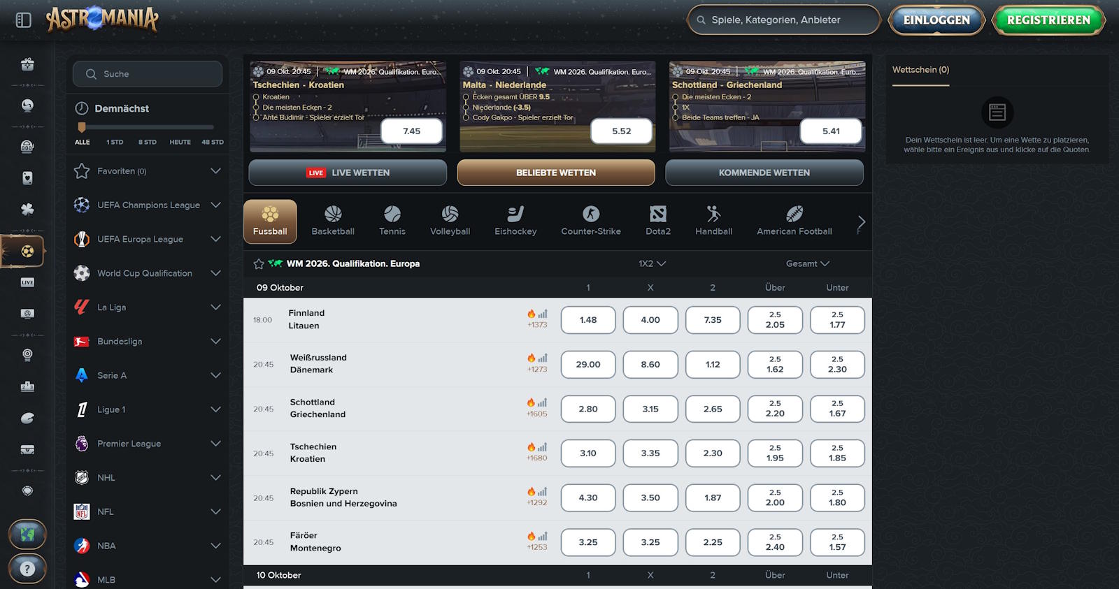 Alle Einzelheiten zum AstroMania Casino im Überblick.