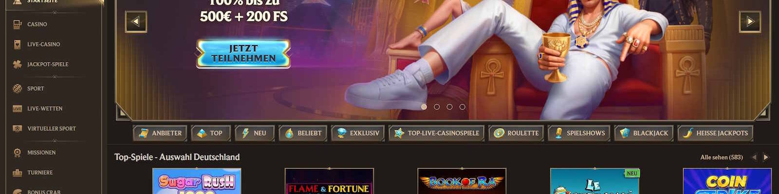 100% Bonus bis 500 € + 200 Freispiele